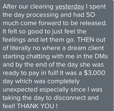 In our session, we go straight to the root. We clear the block in real-time so you leave feeling lighter, inspired, and fully realigned with what you truly desire.